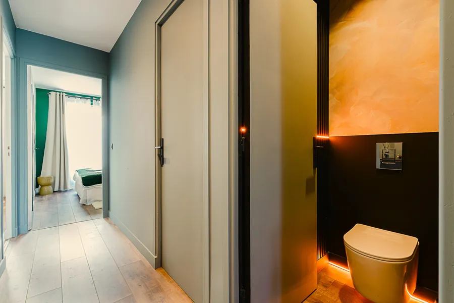 Comme dans les autres logements, les toilettes sont pensées comme un espace à part entière.